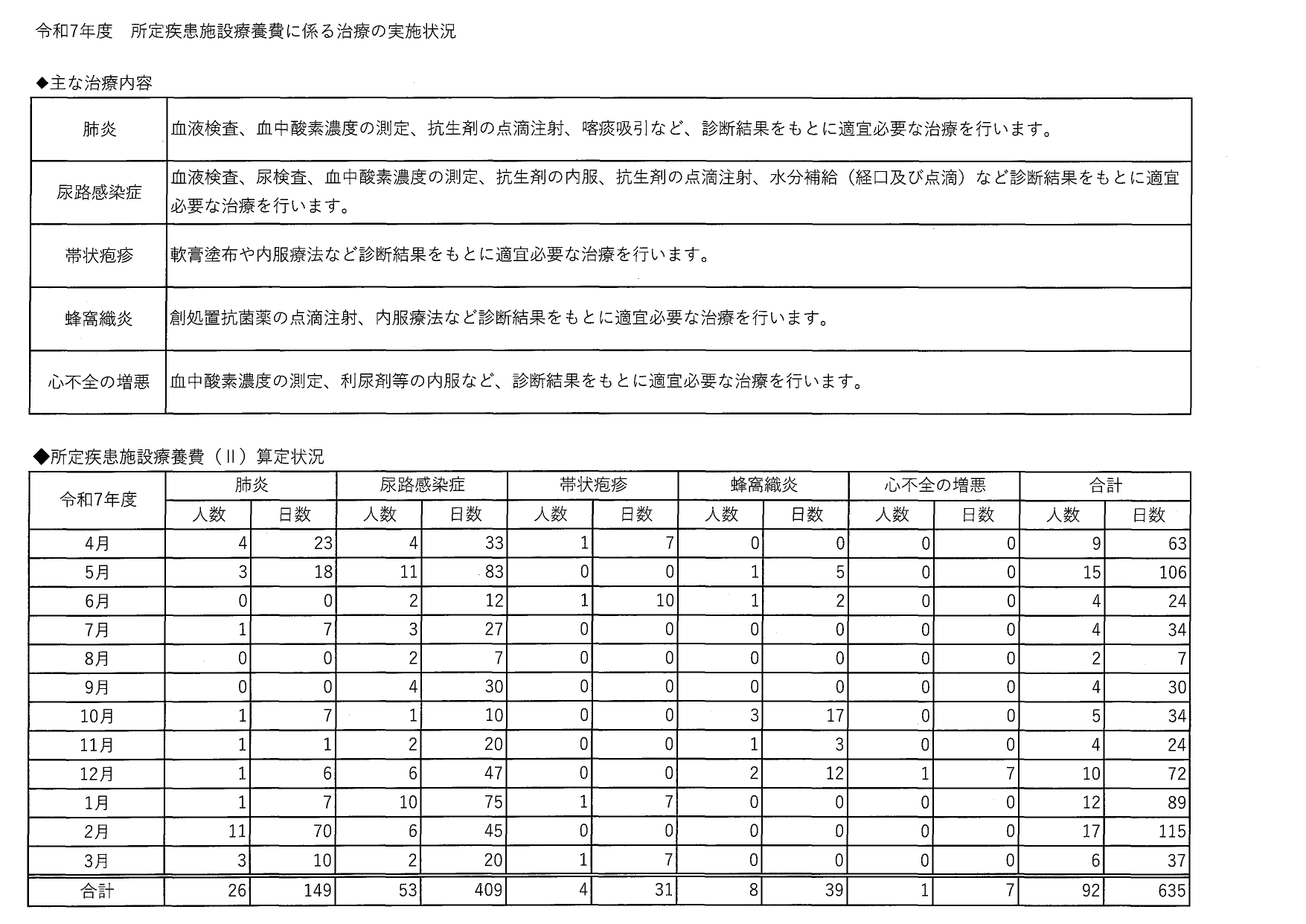 令和7年度 所定疾患施設療養費(Ⅱ)算定状況について
